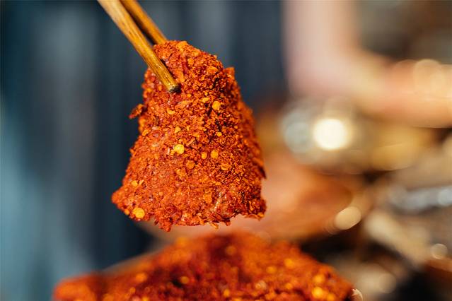 双椒牛肉上面满满地拌了辣椒面,没下锅之前就感觉很火辣很给劲。等下锅涮完后,辣椒都嵌入在肉中,咬一口先是鲜嫩,后是一股辣气上头,麻辣鲜香说的就是这个味!