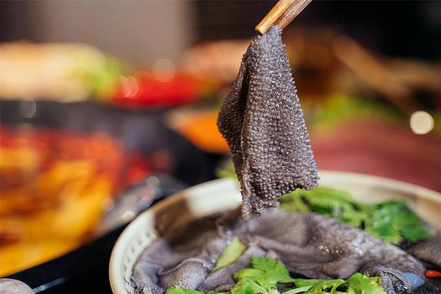 吃火锅的必点菜中可是少不了毛肚的,而且毛肚的口感跟下锅涮的时间有很大关系,把握好时间,才能将毛肚的口感达到最好。这里推荐大家可以采取“七上八下”的方法,也就是夹着毛肚在锅里起落15下就行了,用时大概是10秒左右,这也是阿罗向我传授的手法之一,真讲究,经过“七上八下”的操作,真是口感比我随便涮好太多了,大片毛肚吃起来就俩字,脆爽!