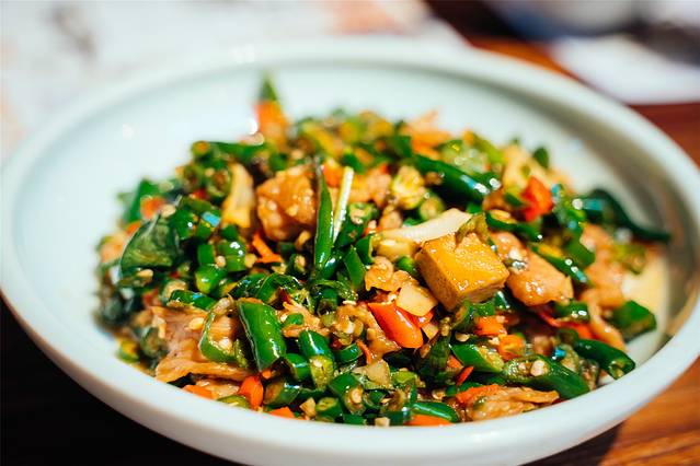 草包牛肉这个名字挺形象也很有仪式感,虽然看起来蛮家常的一道菜,但是口感却不一般,牛肉比火锅里的牛肉还嫩,而且连我这个平时不怎么吃菜的挑食主义者都把里面的绿菜全给拌着牛肉一扫而光!