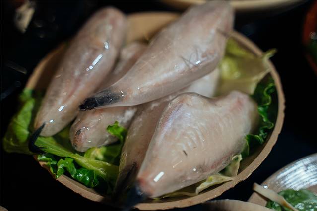 渡江耗儿鱼,没错又是这条 “见光死”的鱼,不过这次我们尝试一下麻辣川菜做法。虽然看起来感觉还挺辣的,但是完全不会,鱼肉鲜嫩也不会干柴,甚至还比涮火锅要好吃很多。