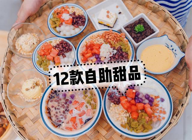 火锅吃着上头的时候,来一份冰爽降火的甜品实在是美哉。更美的是这家的甜品免费吃!总共十二道甜品,红糖冰汤圆、杨枝甘露、椰汁冰沙、冰粉、盆栽布丁……没错!就是免费吃!