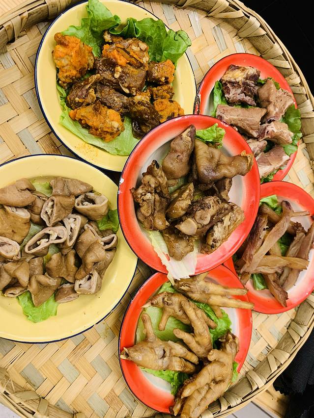 我们俩一遍看着菜单一边瞧着隔壁桌吃得津津有味,咽了口水后迫不及待地开始点菜,卤鸡爪、卤猪蹄、卤肥肠、卤排骨……招牌卤菜统统来一份,生怕不够吃。