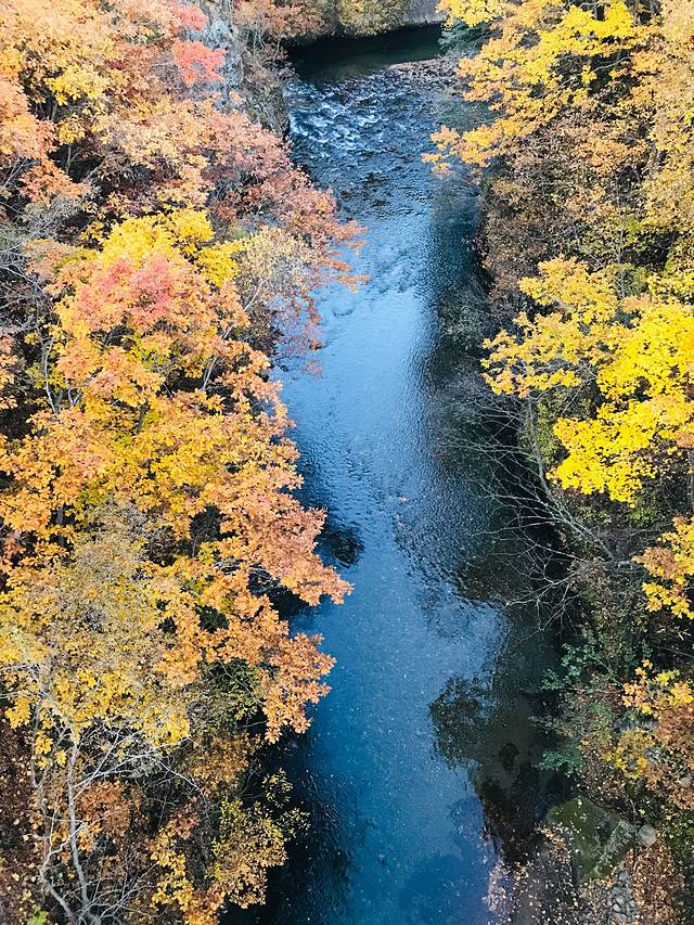 今天天气很好,每年这个时候就是看红叶的季节,早早出发开车两个小时,来到豊平峡ダム,一路上很多车都是往相同方向过去。