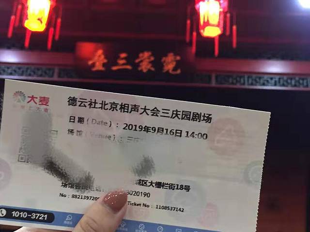 此行主要就是为了看德云社相声,每周五早上十点大麦可以抢票,三庆是限制一个账号最多买两张。我找了四五个小仙女一起抢,经验就是最好每个人只买一张票,如果要两张就会很难锁定中间的好位置。此行我只看了天桥剧社和三庆园。