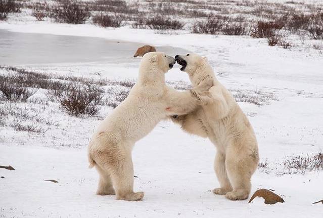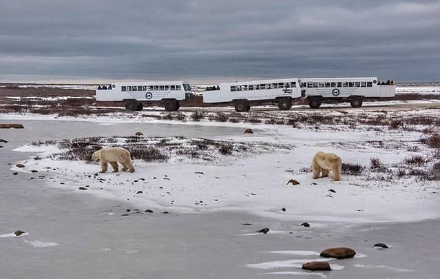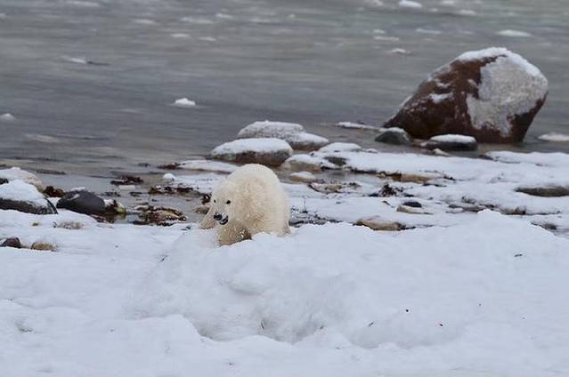 丘吉尔的“世界北极熊之都”称号果真没有浪得虚名,我们看到了很多投野生北极熊,大熊小熊,秀恩爱的玩耍的,真是不虚此行。在这里我所看到的北极熊除了真实一点,数量上更多一些以外,和电视里看到的并无什么不同,只是会让看着的人心生澎湃和喜爱罢了。可是谁又能想到呢,北极熊的外貌是如此的“萌萌哒”,人类对于美的事物总是会有比平常要多的耐心,看熊这样枯燥无味的活动仿佛都变得有吸引力了。
