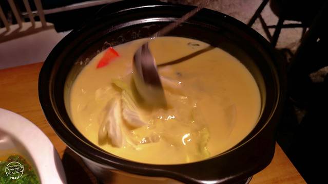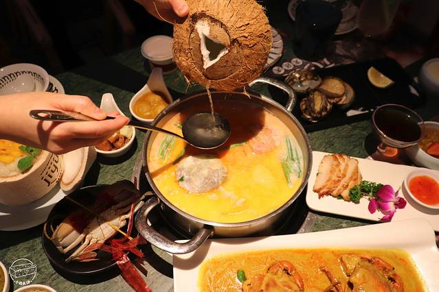 我们选的是招牌鲜料冬阴功锅底,看着新鲜的香料搭配搭配现的椰子一起熬煮的汤底,感受到了满满的泰式风味。