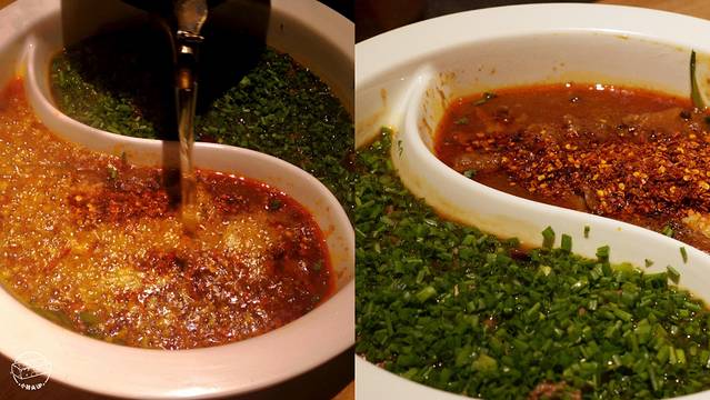 鱼碟蘸料也是特质的,淋上红油汤底,才是更完美的搭配。