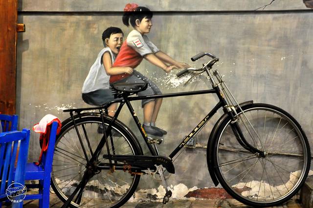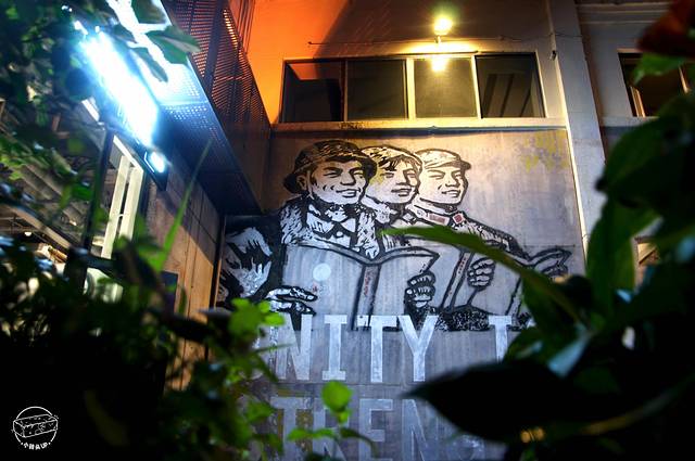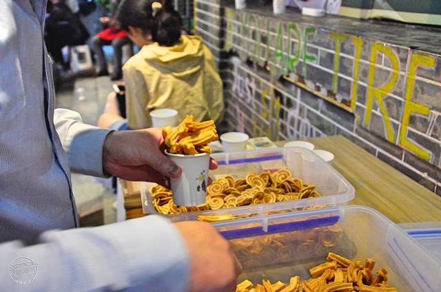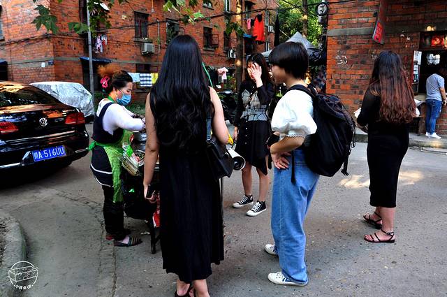 马路边边走的是怀旧风路线,无论是墙上的涂鸦,还是用小板凳坐着吃,都让人觉得很古早。