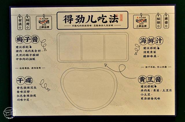 这里的酱汁也是一绝。梅子酱建议搭配鸡肉、猪肉等食材,用梅子的酸甜口感中和肉的油腻;海鲜酱汁建议搭配清爽的蔬菜,用来提味道;干碟可以增加热辣浓郁的口感;黄豆酱搭配牛羊肉和其他碳水较多的土豆类菜品,风味更多元化。