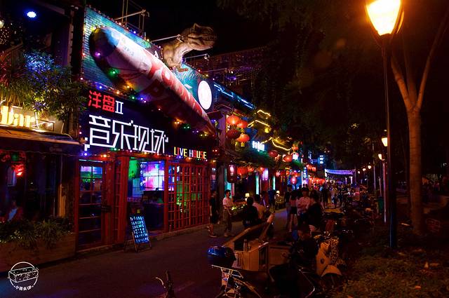 这里除了各种林立的店铺,深处还有热闹的酒吧,可以说非常具有古镇夜色风情了。