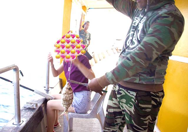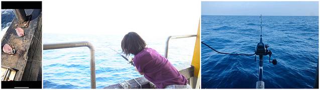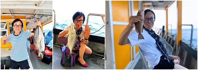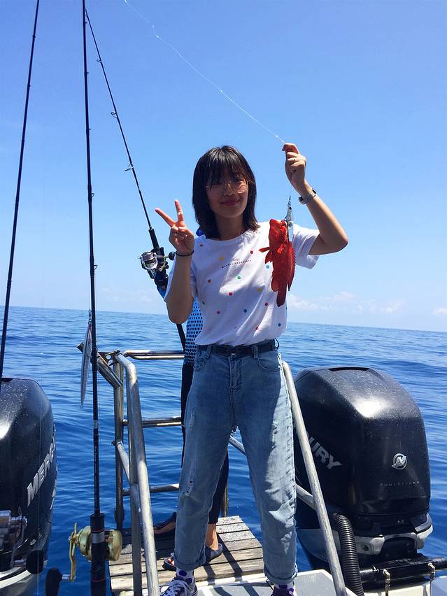 而我,因为船摇晃站不稳的原因动作异常古怪好笑,不过当我钓上鱼的那一刻,既兴奋又惊讶,那可能是我钓到的最大的鱼了,连晕船我都忘了。