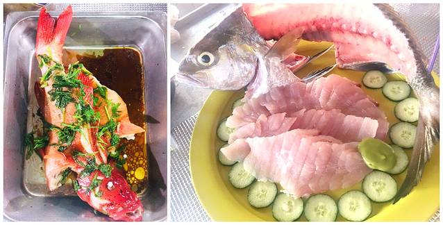 我们去过最深的地方是大概水深100米的钓点,朋友钓上了一条东星斑连冷冻箱都没有进,直接放到厨房,当作晚餐了。还有红甘直接切片,吃到了最新鲜的生鱼片。