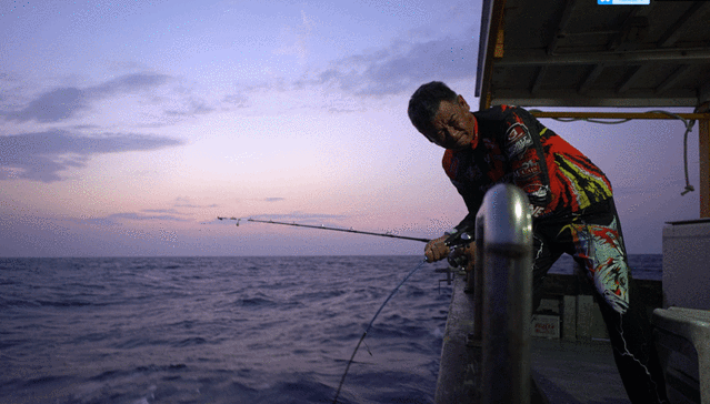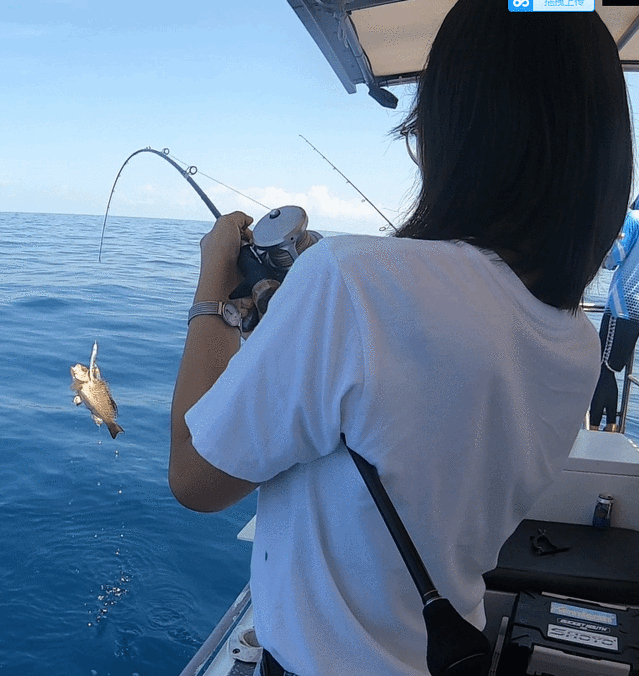 一直不甘心只掉沉底钓的我,跃跃欲试也想尝试一下摇铁板,但是因为我是个新手,需要在船长的帮助下才能完成这次摇铁板。