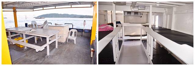 船舱里面很大,有10张床位,我们几个人再加上行李刚刚好,很宽敞,一点也不挤。本来以为晚上睡觉会很摇,睡不好,但是睡了一晚上发现没有想象的那么晃,而且很舒服,最主要的我晕船的时候都是躺着度过的,大家开玩笑说船停下的时候我在钓鱼,船开始走的时候我就在睡觉。