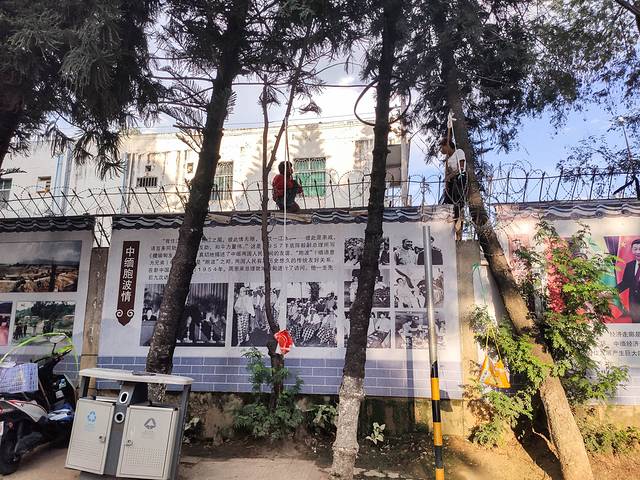 口岸四周是免税商场,走在小巷里,体会着 缅甸 人与边境同胞的日常生活,一墙之隔,或一网之隔就是 缅甸 ,口岸左边是的小路里有几个小孩爬到墙上等到国人的“打赏”,而口岸右边就是一网之隔的小商铺,售卖着一些日常用品和香烟,这些免税品在今 天来说已经豪无吸引力。