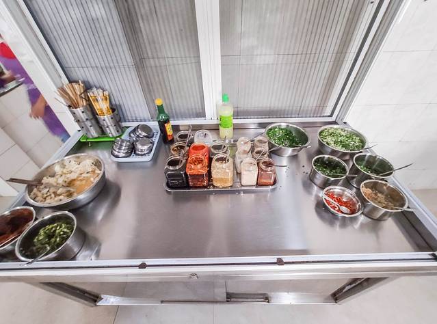 在 芒市 到处也 四川 重庆 味,只有在路边的小摊偶然机会遇上一碗饵丝,这一碗饵丝的出现,要多亏一场雨,不然也不会停下脚步,在这小店有餐,只有单一的肉类,粉或饵丝,可其它配料却能搭配出几十种口味,任意添加。由于不知道味道是怎样的,所以先放一点点尝试,对于平常爱吃香菜香葱的我来说,这里就简直是天堂,任意添加的香菜,吃出新玩法,饵丝的细小也还有口感清爽的感觉。令人爽快的的进食,以致回味无穷。