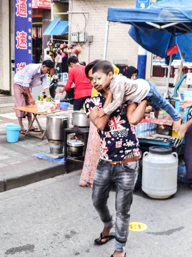 在姐告口岸活动的 缅甸 人,当时没有逛免税商场,因为没有吸引的东西,而且价格大家都心知肚明,反而对这里的风土人情产生了兴趣,静静地走在大街小巷,看着那些身影。他们已经习惯了游人的相机,当发现你拍他的时候,会礼貌地向你拿 钱,如果你拒绝,他们也会礼貌回应。完全不像国内某些地方的强买强卖,把人逼走。