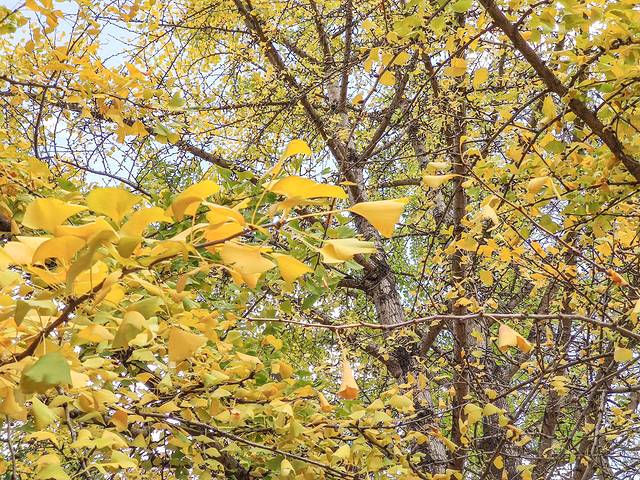 经过检票,我们进入到村里,远远就能看到不少金黄的银杏树,这些看上去都是年轻新种 ,黄得经较早,可是这才十月,还有很长时间才黄透