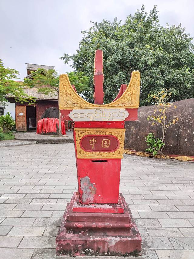 两国的邮箱,一面是 中国 ,一面是 缅甸 ,在邮箱不远的小房子,可以邮寄明信片,但款式单一简单,而且 数量不多