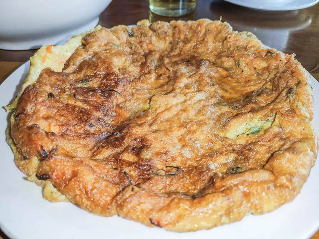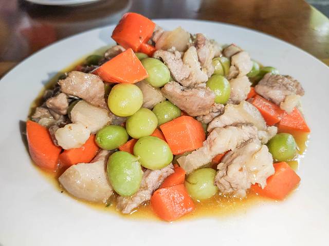 如果不条件限制,一般我们都吃好一些,尽可能的尝一尝当地的小吃和特色食物,在 腾冲 固东银杏村,因为赶路而错过了最佳饭点时间,到达景区已经下午两点多,就在进村不远处选择了一家农庄,随便点了两个菜。一个是店家推荐的银杏炒肉,一个是我选的煎蛋饼。猪肉连续升价的今天,吃剩最多的居然是猪肉,银杏也被我一颗颗的挑出来吃掉,蛋饼也是不错,被清盘了。值得提一下的是店家给我们冲的茶,特别的有味道,那一刻真有问店家买一些回来自己泡茶的冲动,经过了解,店家泡的茶是某知名凉茶品牌的原材料之一,功效是清热解毒,下火。