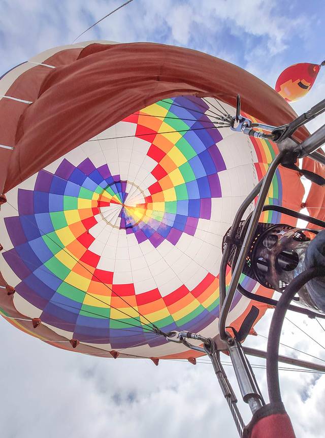 进入热气球要经过一翻攀爬,脚长的我表示没难度 ,要是个子不高的小姐姐,可能就要花费点时间了,一个气球一般就坐六个人,包括一名操控人,气球平缓上升,头顶热乎乎的气与激耳的喷射声。这些都没有影响到我,把据时间拍拍。