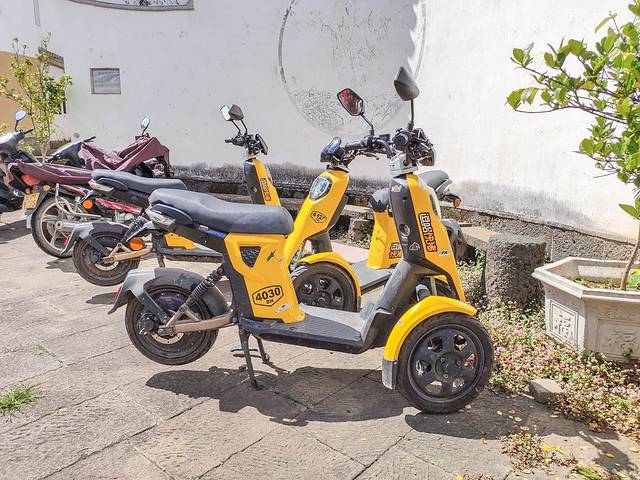 共享电动车,双前轮,游走在古镇内特别的霸气,这里没有 丽江 的喧哗,只有互不打扰的清静,有些不习惯这一种的古镇 ,因为越往山上的越不被重视,游人也越少