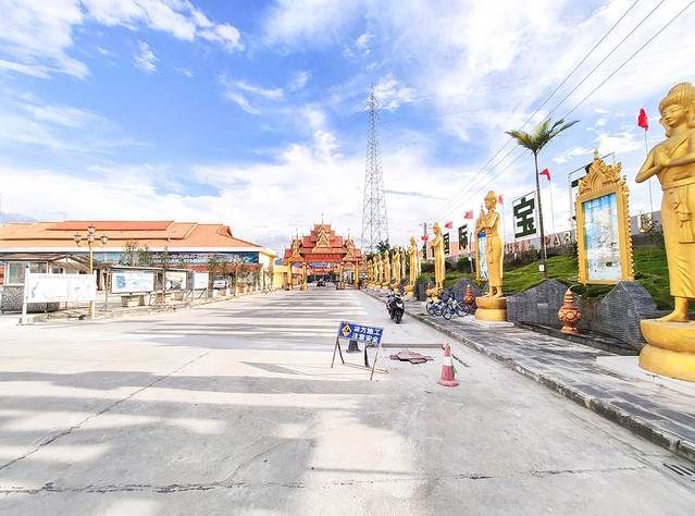 一寨两国是 瑞丽 的地标景点之一,不论旅行团不是自由行,定必会来这里打卡,这也是能走过国界线跨入 缅甸 的地方之一,绝大部分的区域与 缅甸 只是一河之隔,两国人民彼此站在对岸对视,才发现两国的差距在哪,不在指定的区域越界,会被罚款五百。到达景区会有1号车经过,在市人民医院有站,终点是弄岛,会经过一国两寨,票价是5元。车程约一小时,景区内还有一些需要自费的项目,例如坐船(不是用手划船,而是用脚)、登玻璃桥高空看两国等,除此还有邮箱,可以在旁边 的小买部买一份简单的名信片寄出。