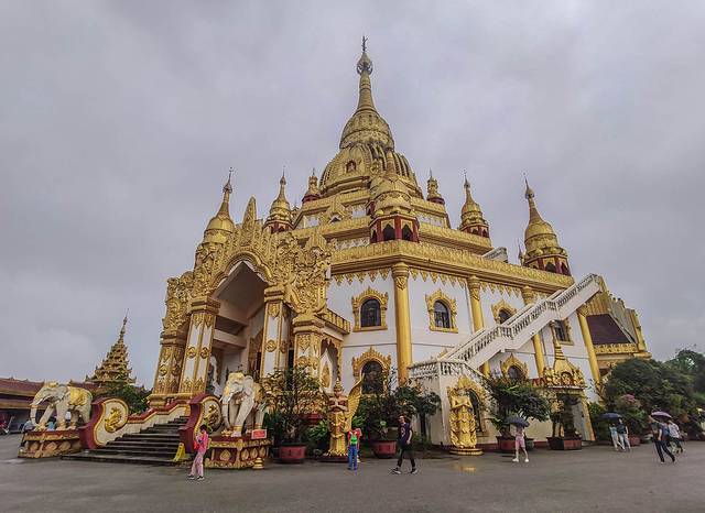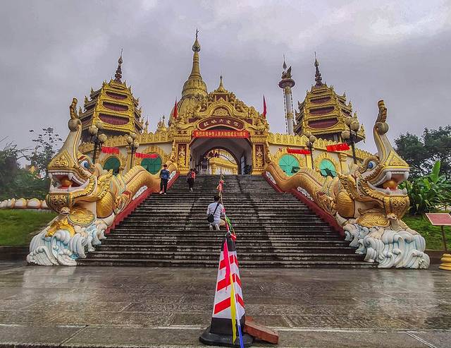 来到山顶,雨还是下着,只是温柔的下着,打伞与不打伞都可以的程度,应该是我们来得早了,游人很少,天色不好,简单的拍了几照,也在网络平台买好门票,进入参观大 金塔 。