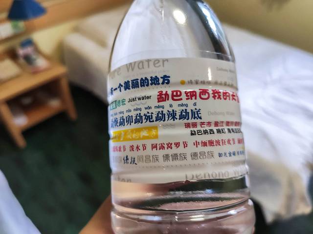 顺利的入住酒店 ,前台小姐姐还调侃我订得早,价格便宜,现在的价格已经翻三倍了,我订的还是平日的房价。酒店房里放的饮用水,满满的特色,大写的赞!