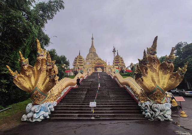 去往大 金塔 的路,会经过历史遗迹,简单逗留往上走,长长的楼梯迎接着游人,如果是自驾车的会走另一条山路,人行的一般走这一条爬山路。
