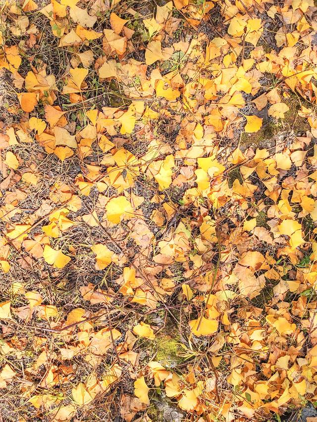 叶子黄掉的都落下了,剩下的都是绿油油,没有一片黄叶挂树上,却看到遍地的黄叶,形成了一种意境,也给村内不少的民宿提供一个特别的氛围,在小院里摆放上几张台,放上食物,有种野炊的感觉