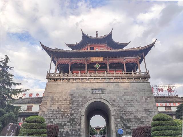因为回程的时候,经过看到一处古城楼,查了一下地图,离客运站不远,所以下车 后天色还早,就走过看看了,楼门上的字说实话看不清,也不知是什么地方,只知道里面卖都是珠宝,像似一条商业的街道,可是六点多,基本都关上门了