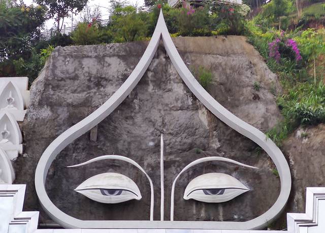 简单的线条勾画出来的轮廓,大家说这是看似什么,是不是孔雀的眼神?奇妙的佛塔周边设置了一个孔雀的眼神像,可见孔雀的 地位在这里是多么的高尚!