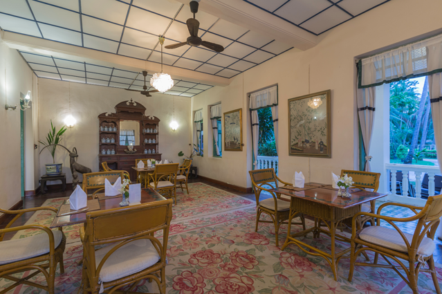 顺着酒店客房旁的蹊径直下到达海滩,首先映入眼帘的不是大海,而是开业于1988年的Cape Panwa Hotel 海角攀瓦酒店Panwa House 餐厅。这间中葡式的两层建筑设有内外两个区域,建筑以白色调为主,窗户和门为绿色,在这里用餐好比是在自己家中一样舒适,安达曼海的美景尽收眼底!