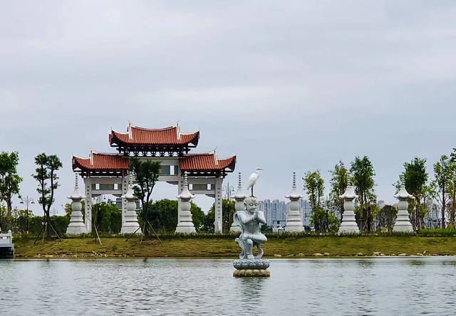 濯心湖位于寺院山门前,意味着咱们离寺院越来越近了,濯心湖也可以称放生池。放生,大家再熟悉不过了,不管信佛不信佛都喜欢放生,延年益寿,消灾免难的事都喜欢做,湖中间立了个朝拜观世音菩萨的童子,两边建筑物和风景各不一,右边景物更丰富些,总之不管怎么走,条条大路通寺院…