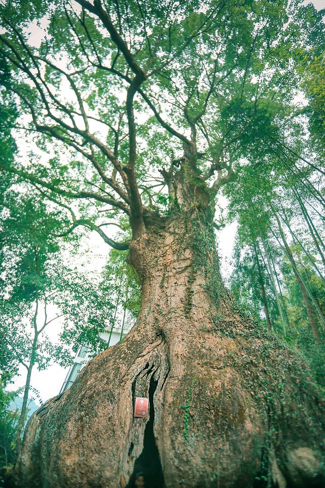 来到让川村,一定要去看看这棵大肚罗汉樟。这棵樟树王根基部长有巨大的树瘤,因其腹大肚圆,形如罗汉,当地人便将此树称为“大肚罗汉樟”。