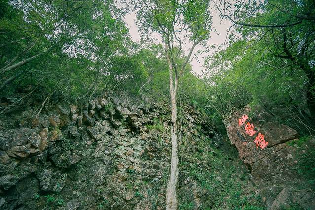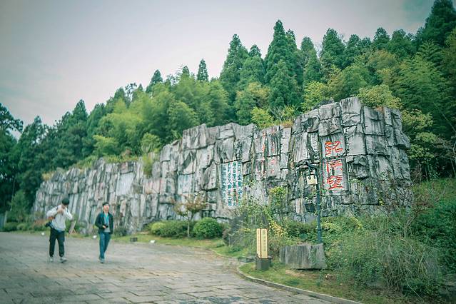 在进入龙麒源景区之前,记得先到停车场旁边的观景台处,好好欣赏一下这片山水。观景台上有一块大石头,上面刻着“天开画屏”的字样,形容得再贴切不过了。
