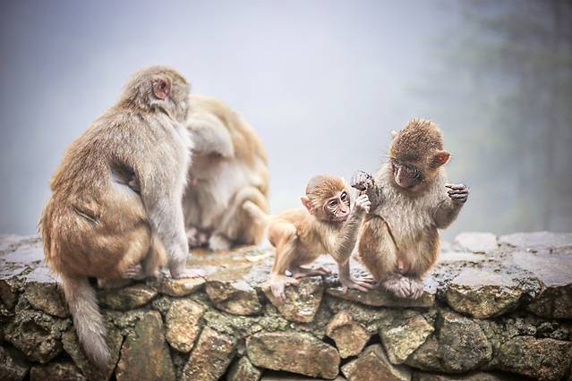 猴真的非常有灵性,我们的一举一动似乎都会被它们看穿。而它们的举手投足,很容易就逗乐我们。它们就像是一群小精灵一般,生活在这幽谷深林处。