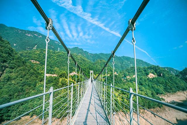 接着我们进入景区,首先迎来的便是“好运桥”。它是一条500多米长的铁索桥,据说是全国最长。置身于铁索桥上,轻微的摇晃让我们既觉得惬意,又有些许刺激。在这里欣赏“天开画屏”的景色,又是另一番感受。