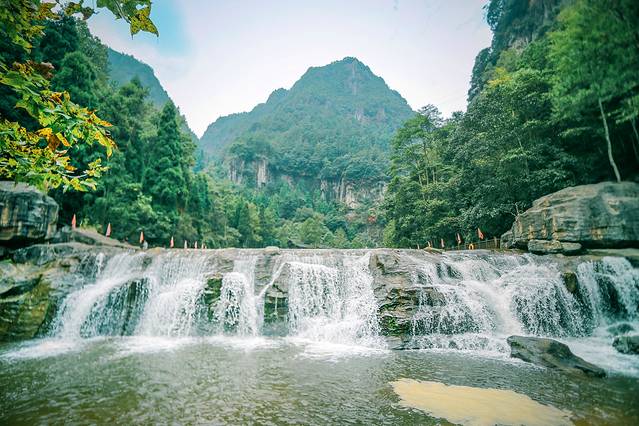 铜铃山诱人的点在于其景区内那全国独一无二的壶穴瀑布,在铜铃山峡那条由高而低的峡谷中,一个个宛如巨大石盆般的水潭,排列而下。有的坐落在谷涧,有的镶嵌于谷壁,有的像酒坛,有的似浅井,有的浑圆光溜,有的穴连穴。潭穴蓄水,水清如碧玉。