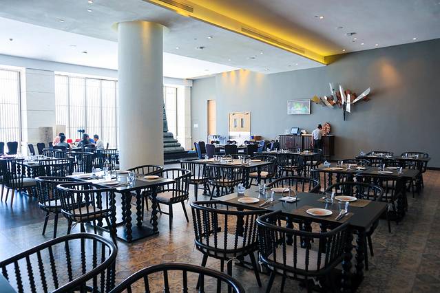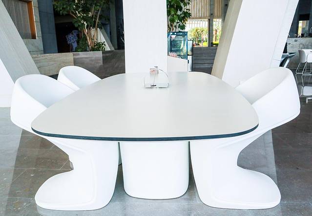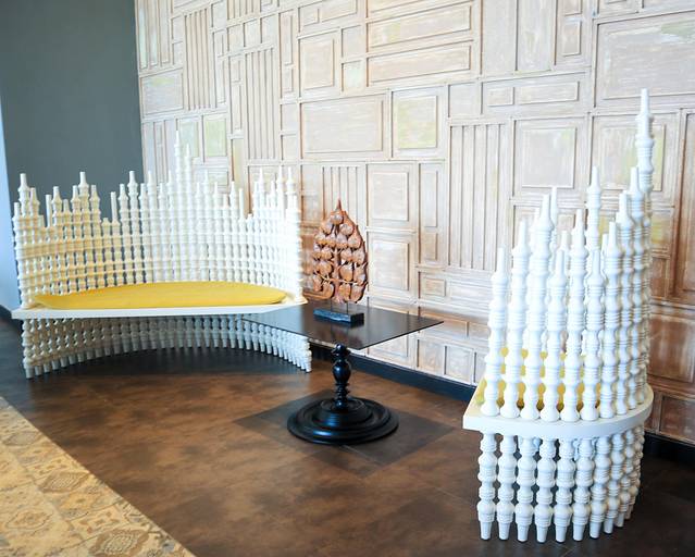 海棠湾红树林酒店的一层大厅正中间有一个下午茶的好去处,这里艺术造型设计也是相当有意思,坐在流线造型的凳子上,安静的感受海棠湾传说中的穿堂风;