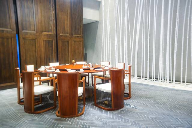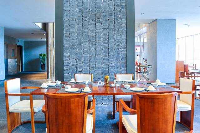 御粤阁中餐厅白竹、青瓦、木门的装饰典雅了整个餐厅。