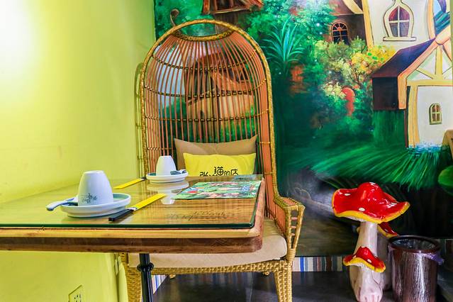 继续往前走然后就能看到漫画一样的装修风格映入眼帘,走过进入店门的漫画和摇椅,就进入更美的童话世界了!