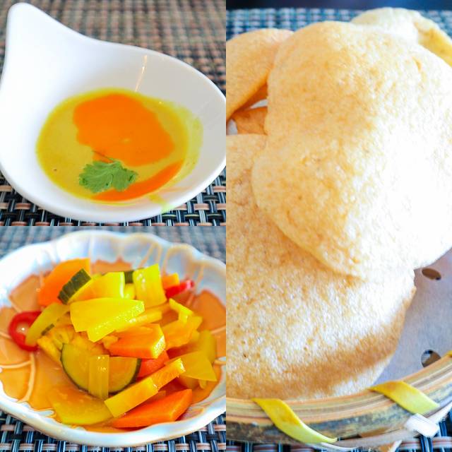 餐前小吃很有特色:炸虾片、腌制的特色开胃小菜都很不错!