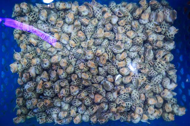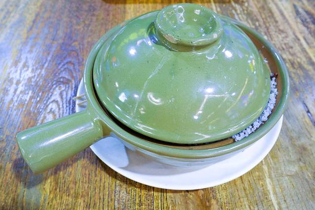 小花螺选用的是盐焗小花螺,将小花螺加适量香料用锡箔纸抱上,用雪白的海盐来焗,焗出来的味道很新鲜,还有海水淡淡的咸味。