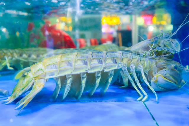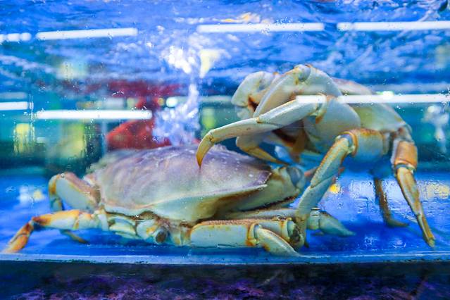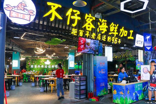 于是迅速确认眼神,在中间海鲜市场选购了四只鲜活的大皮皮虾、一斤多的小花螺、三只蟹。拿到不仔客海鲜加工进行加工,明厨亮灶让人更加与信心了。