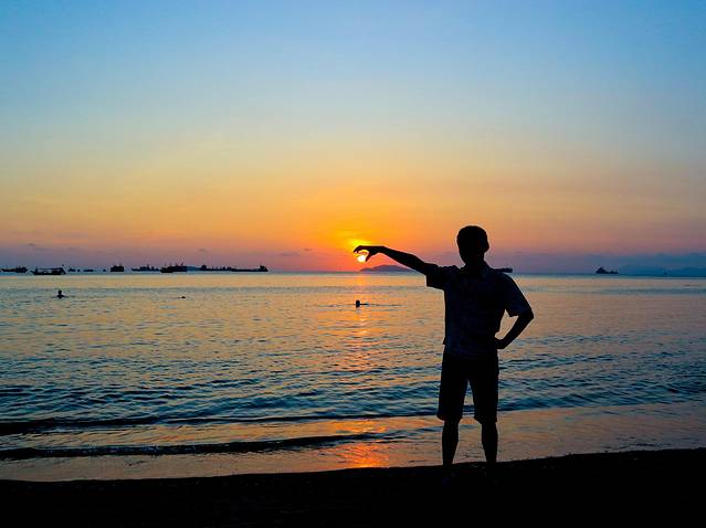 这里是拍日落剪影的好地方,浪比较小,可以下海游泳,但一定要在游泳区去游。只要天气不太糟糕都能看见日落!