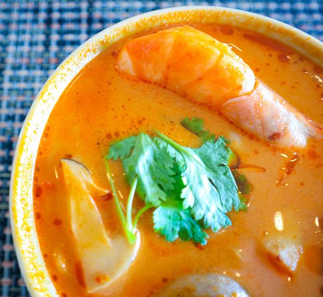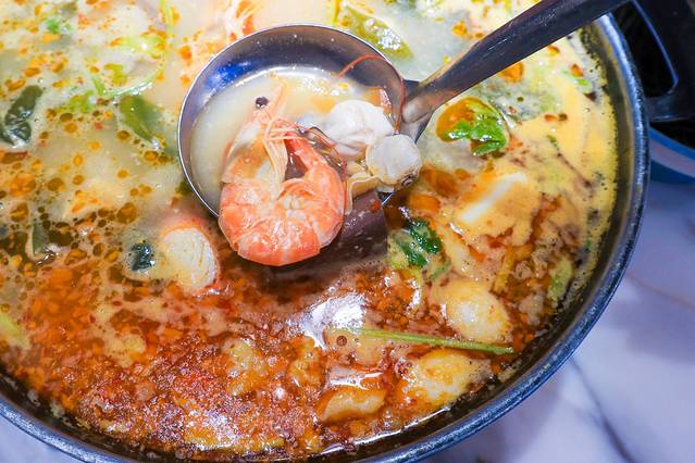 泰式冬阴功汤:新鲜的番茄搭配着大虾的鲜香,喝起来淡淡的酸味很是开胃!