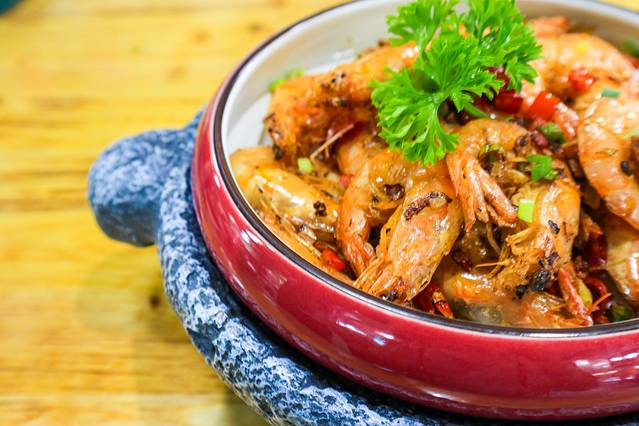 酥香椒盐虾:带着辣味油爆的外表看着就很棒,直接入口就能感受到虾的鲜香,这种做法的好处就是很入味嘎嘣脆,如果想偷懒也可以不用剥壳还是很好吃的!个人更喜欢不剥壳直接入口哟!
