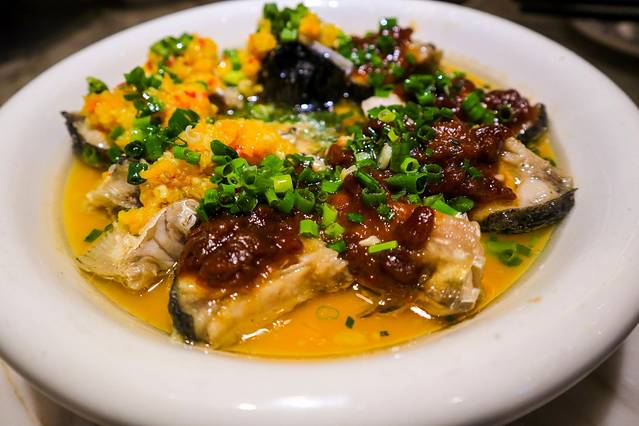 黄灯笼辣椒酱蒸鱼头:用海南本地辣椒黄灯笼做酱,与鱼肉制成的本地特色菜!